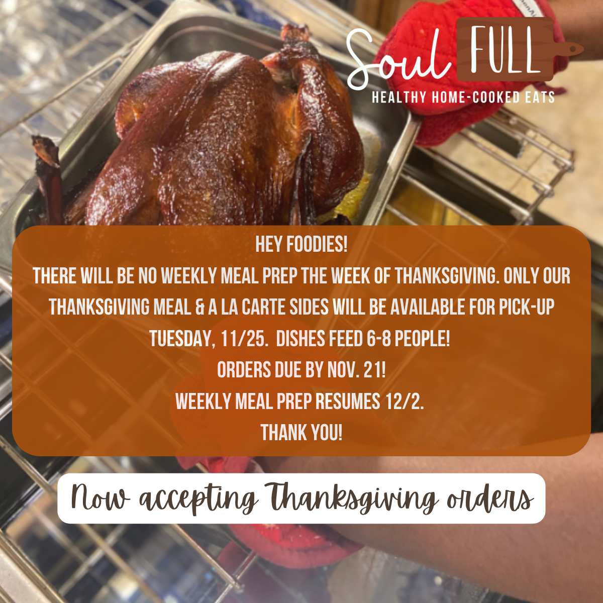 THANKSGIVING DINNER TO GO. ORDER NOW!